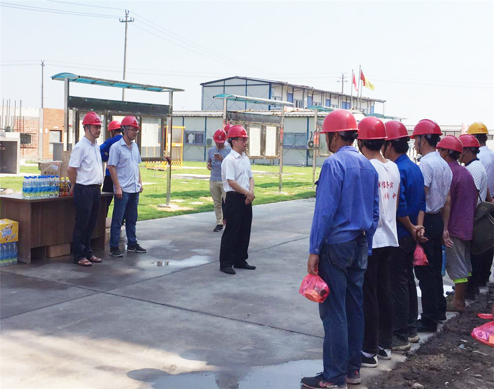 活動現場,高海華副縣長做了簡要講話:他首先代表縣政府及主管部門,對一線施工人員的辛苦付出表示感謝,感謝他們為海鹽建設作出的貢獻。他叮囑工人兄弟要合理分配好作息時間,一定要保重好身體。同時對我集團項目部的防暑降溫具體措施、應戰高溫的應急預案給予了肯定。最后,面對接下來的持續高溫他強調:施工企業要根據高溫的季節特點,合理統籌安排勞動作業時間,進一步落實防暑降溫管控措施,確保職工身體健康,確保工程優質、安全、高效推進。