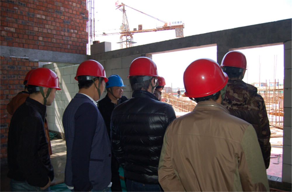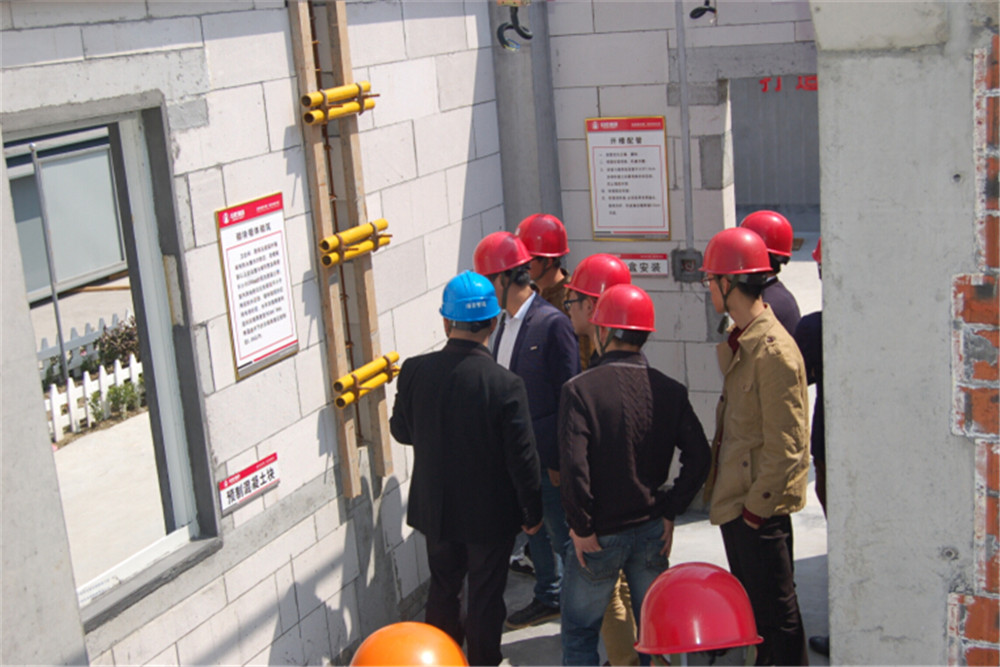 在副總工程師、技術(shù)管理部經(jīng)理蔡會平的帶領(lǐng)下,技術(shù)骨干們參觀了樣板區(qū)和施工現(xiàn)場。在樣板區(qū),蔡工為大家詳細(xì)講解了施工過程中遇到的質(zhì)量通病問題和容易忽視的細(xì)節(jié)。在施工現(xiàn)場,蔡工介紹了該工程高大難新工作的攻堅情況。如大堂的高大支模架搭設(shè)、超高超重梁的處理,指出了工程項目實測實量的必要性,講解了具體實施步驟。