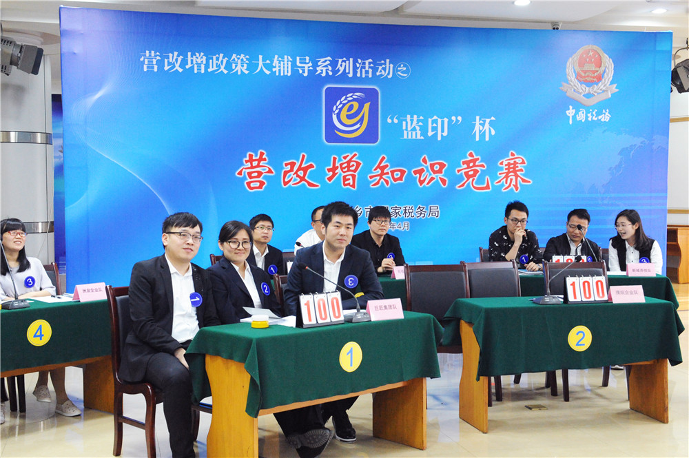 2017年4月25日下午,由桐鄉(xiāng)國(guó)稅局舉辦的營(yíng)改增知識(shí)競(jìng)賽在國(guó)稅局大樓9樓會(huì)議室如火如荼進(jìn)行。本次競(jìng)賽由桐鄉(xiāng)國(guó)稅局副局長(zhǎng)高海群、政策法規(guī)科科長(zhǎng)沈建學(xué)、副科長(zhǎng)彭國(guó)強(qiáng)組成評(píng)委團(tuán)。比賽共有七支隊(duì)伍參加比賽,分別是巨匠集團(tuán)、巨石集團(tuán)、濮院企業(yè)隊(duì)、石門企業(yè)隊(duì)、洲泉企業(yè)隊(duì)、烏鎮(zhèn)旅游隊(duì)。