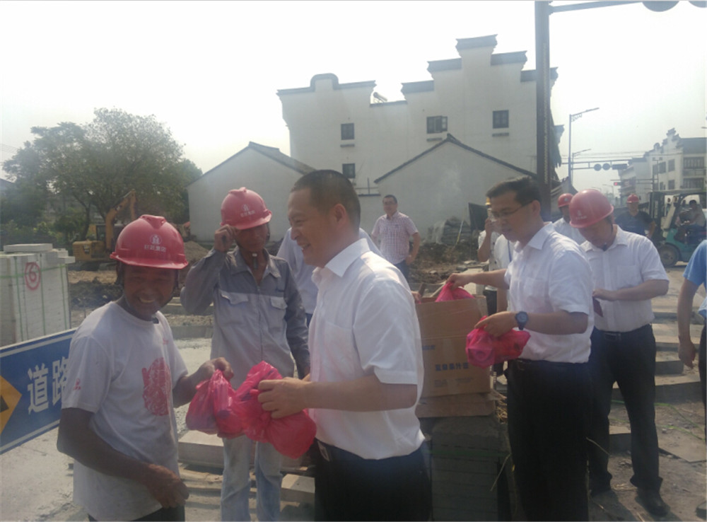 7月28日,桐鄉市委書記盧躍東來到我集團巨匠市政公司承建的烏鎮環河路西段、隆源路北段道路改造、國際風情街項目進行高溫慰問。該工程將烏鎮景區北門及整個環河西路打造成國際一流風情街,是第三屆世界互聯網大會配套工程。