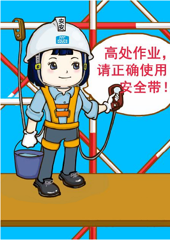 安全帽必須戴,防止墜物掉下來。安全帶是個寶,高空保險不能少。