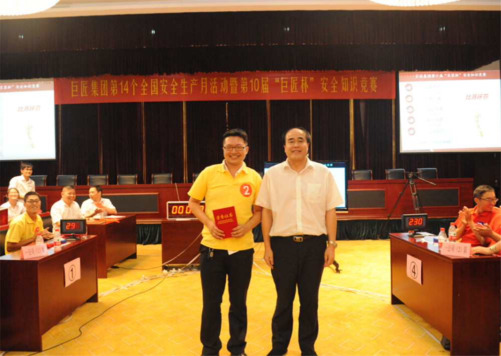 為全面貫徹落實全國第14個安全生產(chǎn)月活動的精神,全面提高廣大安全生產(chǎn)從業(yè)人員的安全知識,達到“以賽促學、以學促用、保證安全生產(chǎn)”目的,6月24日,集團開展了以“加強安全法治,保障安全生產(chǎn)”為主題的第10屆“巨匠杯”安全生產(chǎn)知識競賽。三個管理公司各派2支代表隊參加了比賽。集團全體行政員工和項目部員工觀摩比賽。